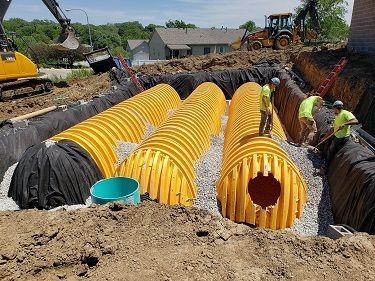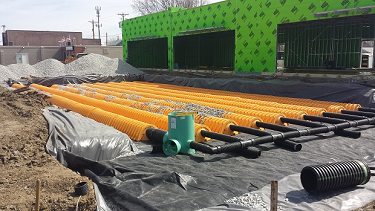 A commercial building on major street through Council Bluffs. A Stormceptor detention/water quality was designed and installed below the front parking area.